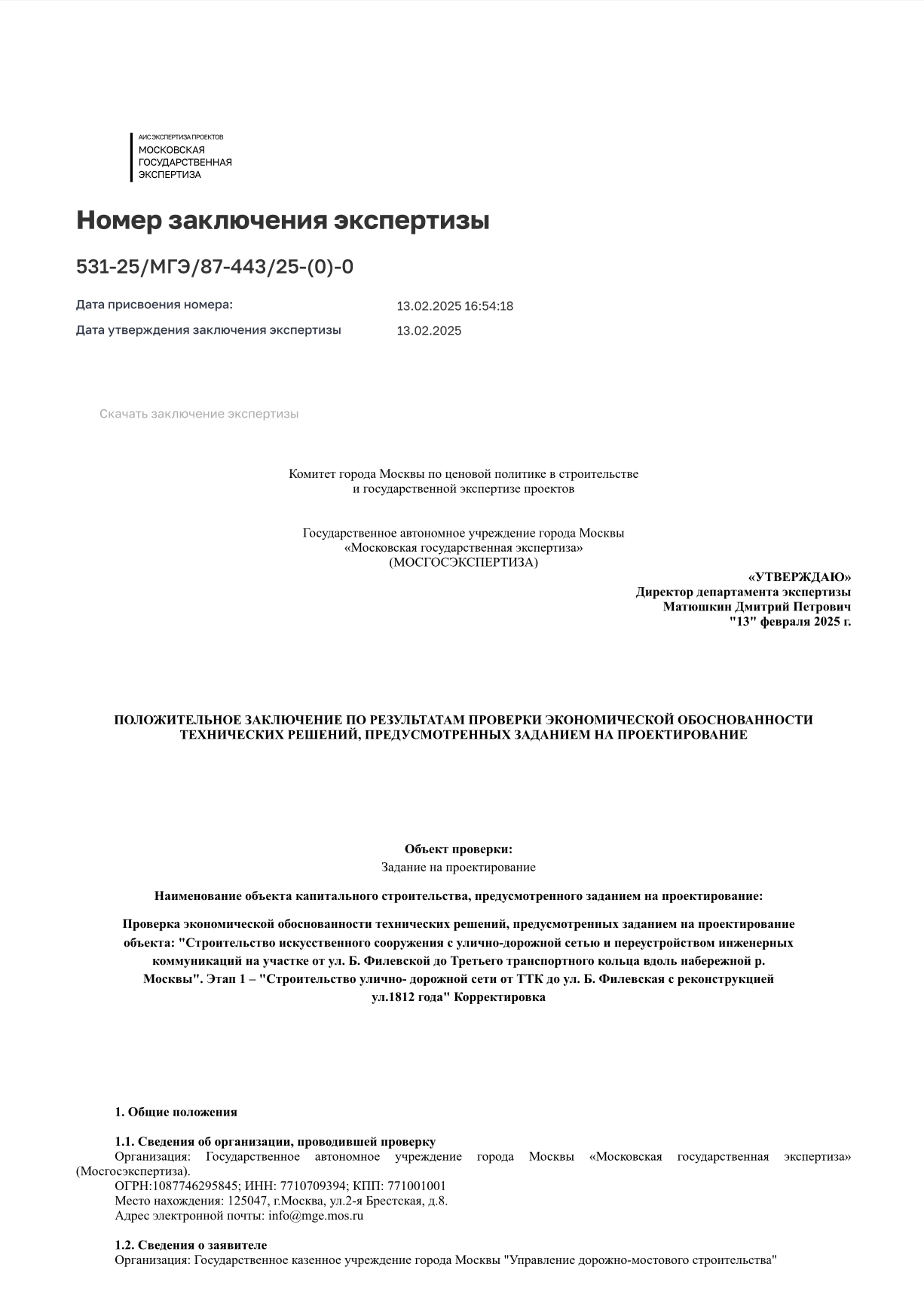 Улично-дорожная сеть от ул. Б. Филевской до ТТК вдоль набережной р. Москвы