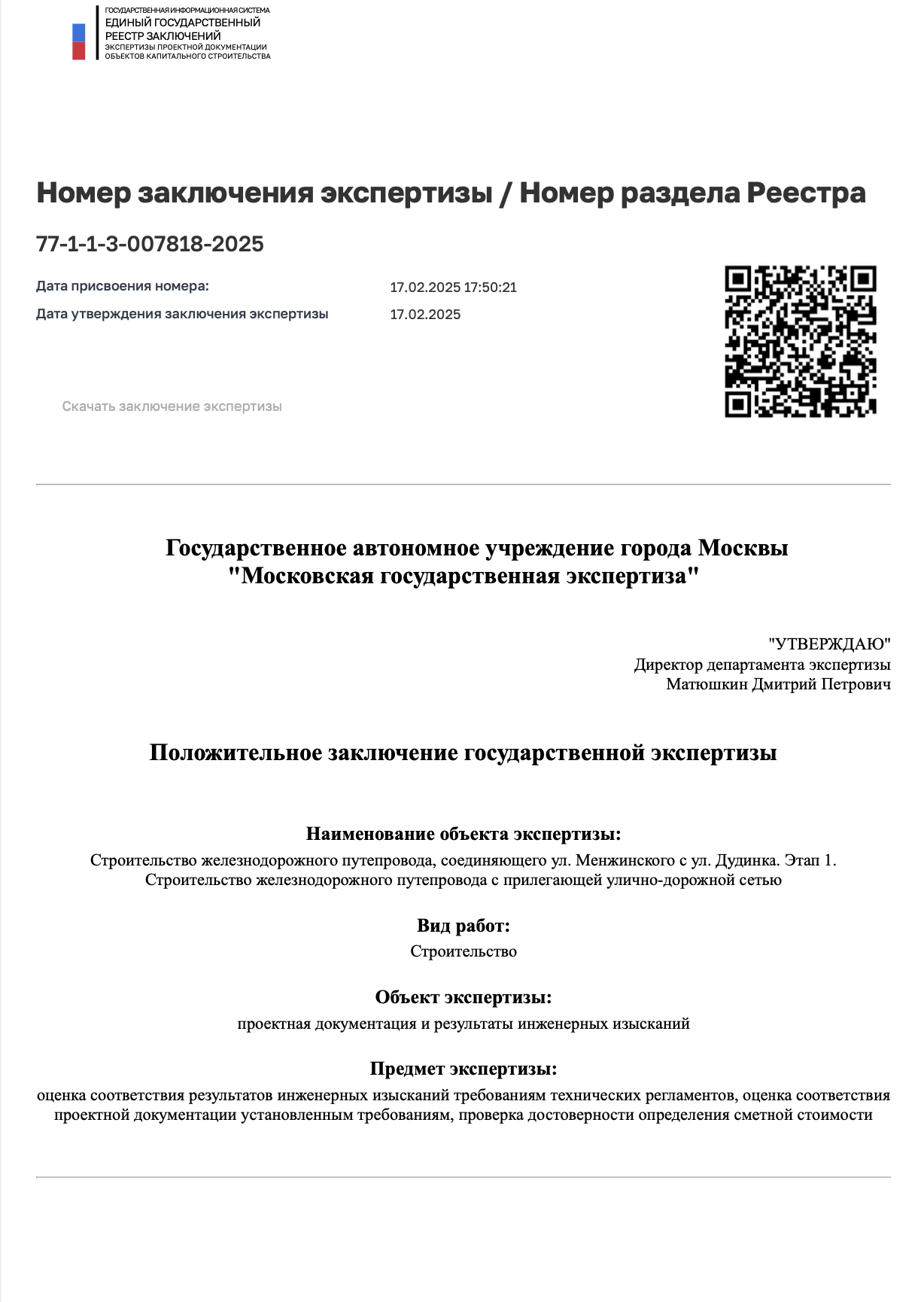 Строительство искусственного сооружения через ж/д пути, соединяющего проезд № 2236 с ул. Хачатуряна
